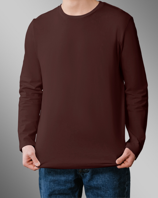 Burgundy Plain-Full Sleeve T Shirt For Men