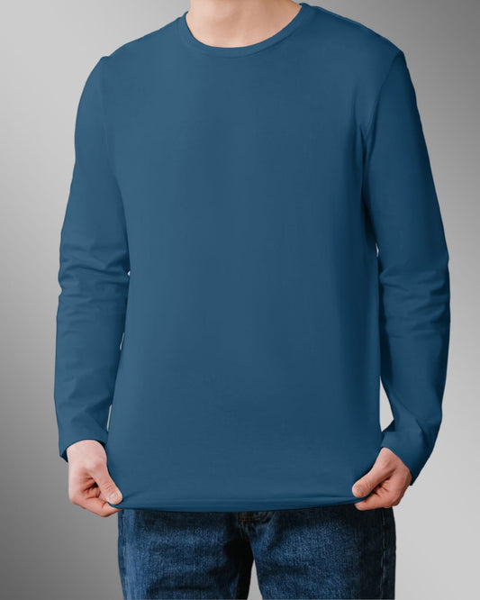 Petroleum Blue Plain-Full Sleeve T Shirt For Men
